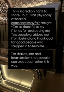 In her post, Melanie Hamrick described the attack as “incredibly hard to share” and recounted how the two individuals approached her from behind. She wrote that she felt shaken, sad, and heartbroken that anyone could behave this way. While details remain limited, the post made clear the emotional impact of the incident.