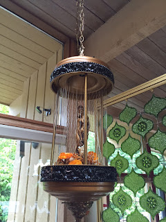 If you aren’t familiar with rain lamps, they were popular in the 60s-70s and used a thick fishing line where oil runs down giving it the appearance that it is raining. They come with a variety of figures inside- from a mill wheel to a dancing couple. My lamp has the “Venus” figurine with plastic orange flowers. Perfect, just what I wanted!